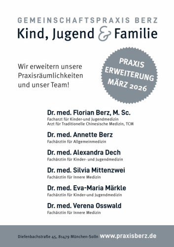 Wir begrüßen Sie herzlich in unserer Gemeinschaftspraxis für Kinder- und Jugendmedizin sowie Allgemeinmedizin in München.